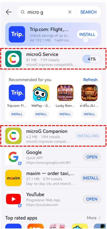 กระบวนการติดตั้ง MicroG เริ่มต้นด้วยการเปิดใช้งาน AppGallery และค้นหา “MicroG” ในแถบค้นหา ติดตั้งแอปพลิเคชันทั้ง “MicroG Services” และ “MicroG Companion” เนื่องจากส่วนประกอบที่เสริมกันเหล่านี้ทำงานร่วมกันเพื่อสร้างสภาพแวดล้อมที่จำเป็นสำหรับการทำงานของ Facebook ในระหว่างการติดตั้ง มอบสิทธิ์ที่ร้องขอทั้งหมดเพื่อให้แน่ใจว่าฟังก์ชั่นการทำงานที่ถูกต้อง แอปพลิเคชันสองตัวจัดการกับแง่มุมต่าง ๆ ของความเข้ากันได้กับบริการของ Google โดยที่ MicroG Services จัดการการทำงานของเฟรมเวิร์คหลักและ MicroG Companion จัดการการซิงโครไนซ์บัญชีและคุณสมบัติสนับสนุนเพิ่มเติม วิธีการที่ประกอบด้วยสองส่วนนี้ช่วยให้แน่ใจว่าสามารถครอบคลุมความเข้ากันได้อย่างครบถ้วน ทำให้ Facebook เข้าถึงบริการที่จำเป็นทั้งหมดในขณะที่ยังคงรักษามาตรฐานความปลอดภัยและประสิทธิภาพบนอุปกรณ์ Huawei ของคุณ